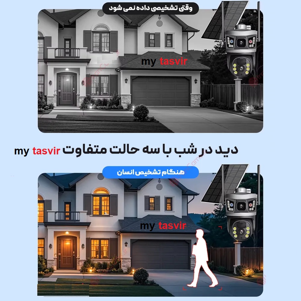 این دوربین بی سیم سولار با دارا بودن LEDهای نور سفید (وارملایت)، امکان دید در شب رنگی واقعی تا شعاع ۳۰ متر را فراهم میکند. حتی در تاریکی مطلق نیز میتوانید تصاویر واضح و رنگی از محیط داشته باشید. این ویژگی در محیطهای کمنور یا بدون نور مثل باغ یا انباریهای دور از ساختمان، امنیت تصویری مناسبی ایجاد میکند و عملکردی بسیار فراتر از دوربینهای معمولی مادون قرمز دارد.
