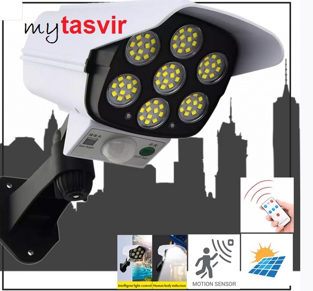 چراغ خورشیدی محصولی مدرن و نوآورانه می باشد که با قیمت اقتصادی می تواند بسیاری از نیاز های کاربران را در زمینه های مختلف برطرف کند. این وسیله دارای قابی به شکل دوربین مدار بسته می باشد که از پلاستیک ساخته شده است. متریال مناسب و قاب خوش ساخت موجب شده مقاومت این چراغ افزایش یابد و امکان استفاده از آن در محیط های بیرونی نیز فراهم باشد. لازم به ذکر است که این محصول از گواهینامه IP65 بهره می برد و در برابر نفوذ آب مقاوم می باشد. این چراغ در قسمت بالایی خود از یک پنل خورشیدی بهره می برد که برای شارژ چراغ کاربرد خواهد داشت و می تواند با ذخیره انرژی دریافتی در روز، کارایی این وسیله را افزایش دهد. این چراغ خورشیدی در مود 1 این چراغ با نور حداکثر روشن میماند که 2 ساعت نگه میدارد.در مود 2 با نور حداقل روشن میماند که با فعال شدن سنسور حرکتی پر نور می شود و در این حالت تا 6 ساعت شارژ نگه میدارد به شرطی که مدام در معرض حرکت نباشد.در مود 3 این چراغ با نور میانگین به مدت 4 ساعت روشن میماند.